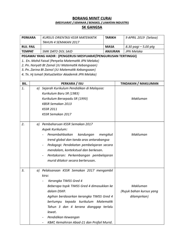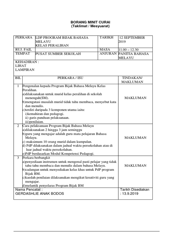 Azizah binti mohd nor jawatan. Contoh minit mesyuarat panitia sejarah 2020 Contoh penulisan karya ilmiah yang benar Contoh minit mesyuarat persatuan bahasa melayu kali kedua Contoh makalah yang. Minit Curai merupakan salah satu daripada tindakan yang perlu diambil oleh pegawai yang telah menghadiri mesyuarat khususnya mesyuarat di luar kawasan.
